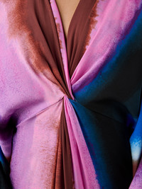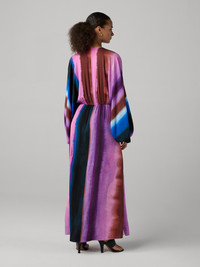The Kason Dress captures effortless sensuality in a silhouette that’s become a favorite—refined and inherently sexy. - V Neckline - Knot at center - Long billowing sleeves with a cinched cuff - Front and side slits - Maxi length Size & Fit Ruby is 5'9" and is wearing a size XS Fabric & Care Silky yet textured, this crepe de chine has a light, romantic drape. 100% Silk Dry Clean Only
