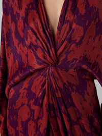 A modern take on our classic Kason Dress, the Kason Jumpsuit offers the same flattering fit with the ease of a tailored jumpsuit silhouette. - V Neckline - Knot at center - Long billowing sleeves with a cinched cuff - Wide leg - Full length Size & Fit Beatriz is 5'11" and is wearing a size XS Fabric & Care This fabric presents the smooth shine of satin with a soft, subtly textured finish 59%Viscose 41% Rayon Dry Clean Only