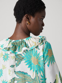 Cut from a soft silk-cotton blend, the Kylie maxi dress has a ruffled deep V-neckline and an effortless, luxurious drape. - 72% Cotton, 28% Silk - Ruffled deep V-neckline - Neckline tie to create keyhole detail - Long billowy sleeves with cinched wrists - Easy shape - Full tiered skirt - Maxi length Size & Fit Isha is 5'10" and is wearing a size XS