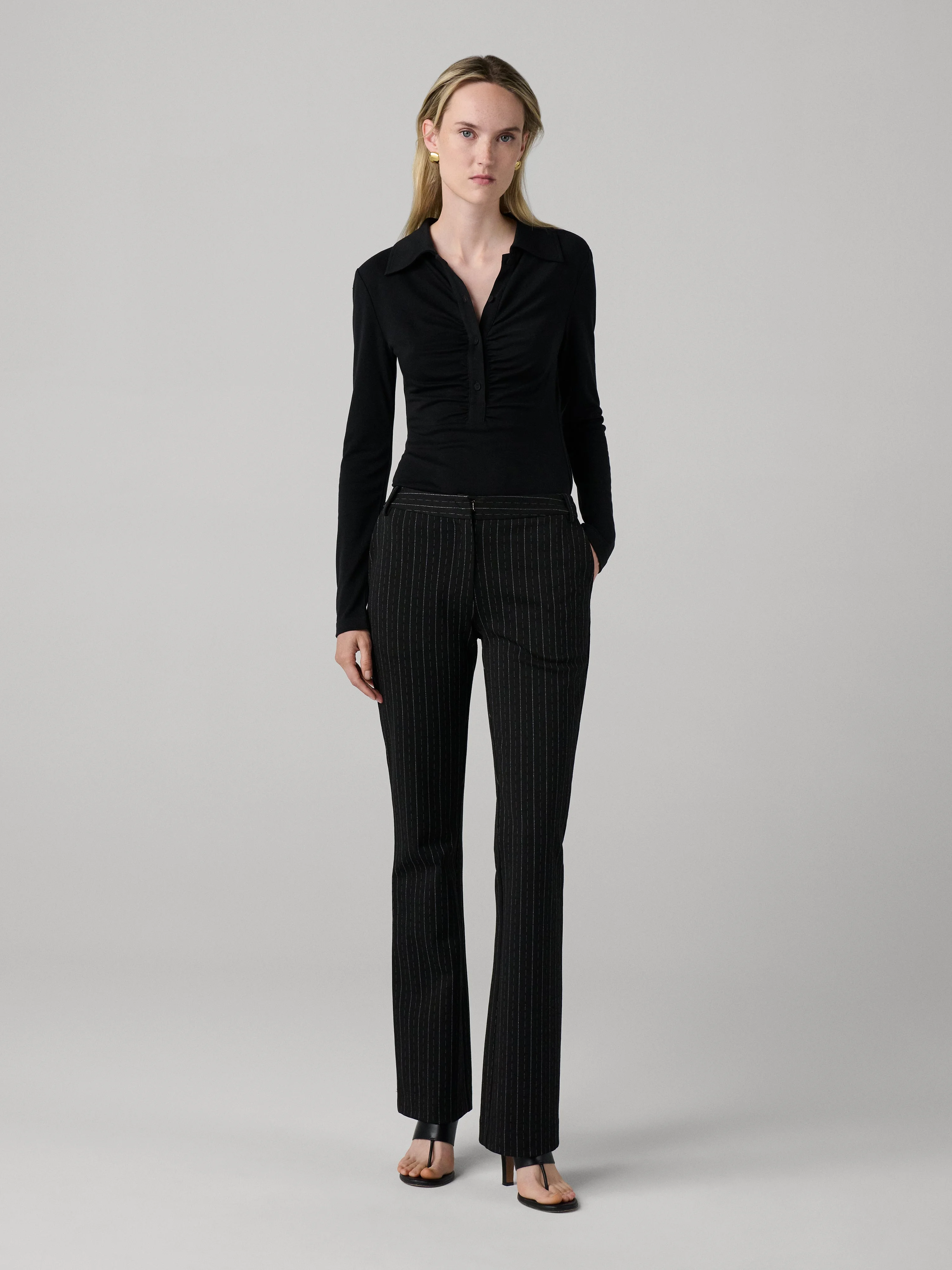 Our Mason Pants, made in durable stretch ponte, are the ultimate workwear essential. - Mid rise - Pinstripe design - Straight fit - Belt loops - Thick fabric with stretch - Full length Size & Fit Harleth is 5'10" and is wearing a size XS Fabric & Care With both thickness and stretch, our ponte fabric balances structure and comfort made for everyday wear. 95% Polyester 5% Spandex Dry Clean Only