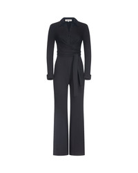 Straight out of the 70s, the best-selling Michele jumpsuit is a shape jersey piece made for movement, inspired by Diane's Studio 54 days. - Close fit - Classic collar - Buttons to the waist - Waist-defining matching belt - Straight leg with flare Size & Fit Keny is 5'10" and wearing a size XS Fabric & Care Shape Jersey is structured yet fluid, this jersey is perfect for creating comfortable suiting or sculpting dresses with a smooth, clean finish. 87% Ecovero Viscose, 10% Nylon 3% Spandex Ponte