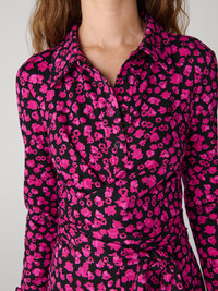 Straight out of the 70s, the best-selling Michele jumpsuit is a shape jersey piece made for movement, inspired by Diane's Studio 54 days. - Close fit - Classic collar - Buttons to the waist - Waist-defining matching belt - Straight leg with flare Size & Fit Maia is 5'10" and is wearing a size XS Fabric & Care Shape Jersey is structured yet fluid, this jersey is perfect for creating comfortable suiting or sculpting dresses with a smooth, clean finish. 87% Viscose, 10% Nylon 3% Spandex