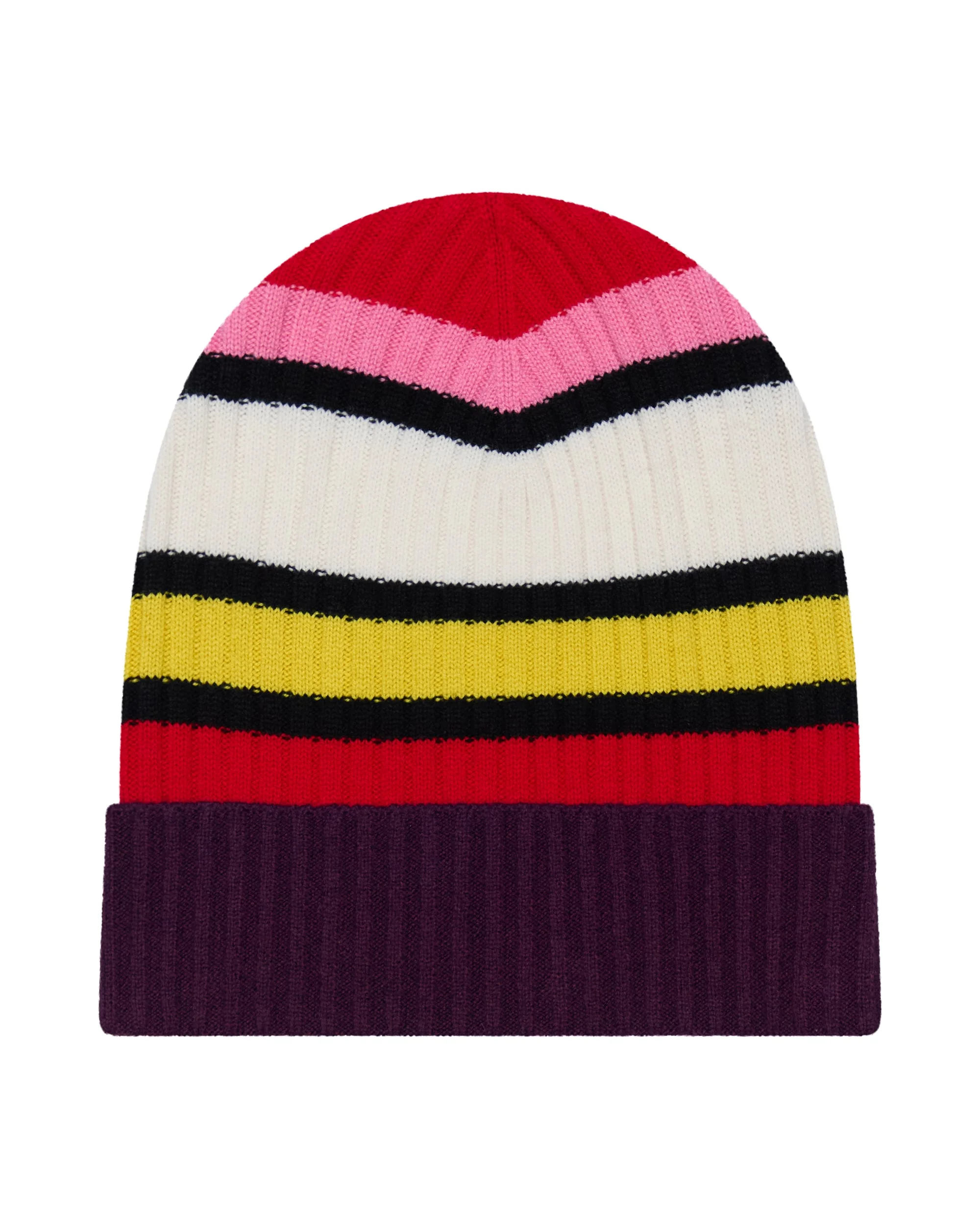 The Mila Hat keeps you warm and stylish crafted from our signature wool cashmere blend. - Ribbed knit - Striping - Beanie shape - Foldover detail - Slight oversized fit - Pair with the Mila scarf, Mila gloves, and Mila socks Size & Fit One size, oversized fit. Fabric & Care Luxuriously soft with a smooth, structured finish 70% Wool 30% Cashmere Dry Clean Only