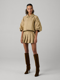 The Naomi Jacket redefines lightweight layering crafted from cotton twill with a structured, flirty, and sculpted silhouette. - Collared neckline - Pockets - Bracelet length sleeves - Adjustable sleeves and hemline - Button closure Size & Fit Ruby is 5'9" and is wearing a size XS Fabric & Care Durable and comfortable, this fabric combines natural breathability with added strength and wrinkle resistance. 52.6% Cotton, 47.4% Polyester