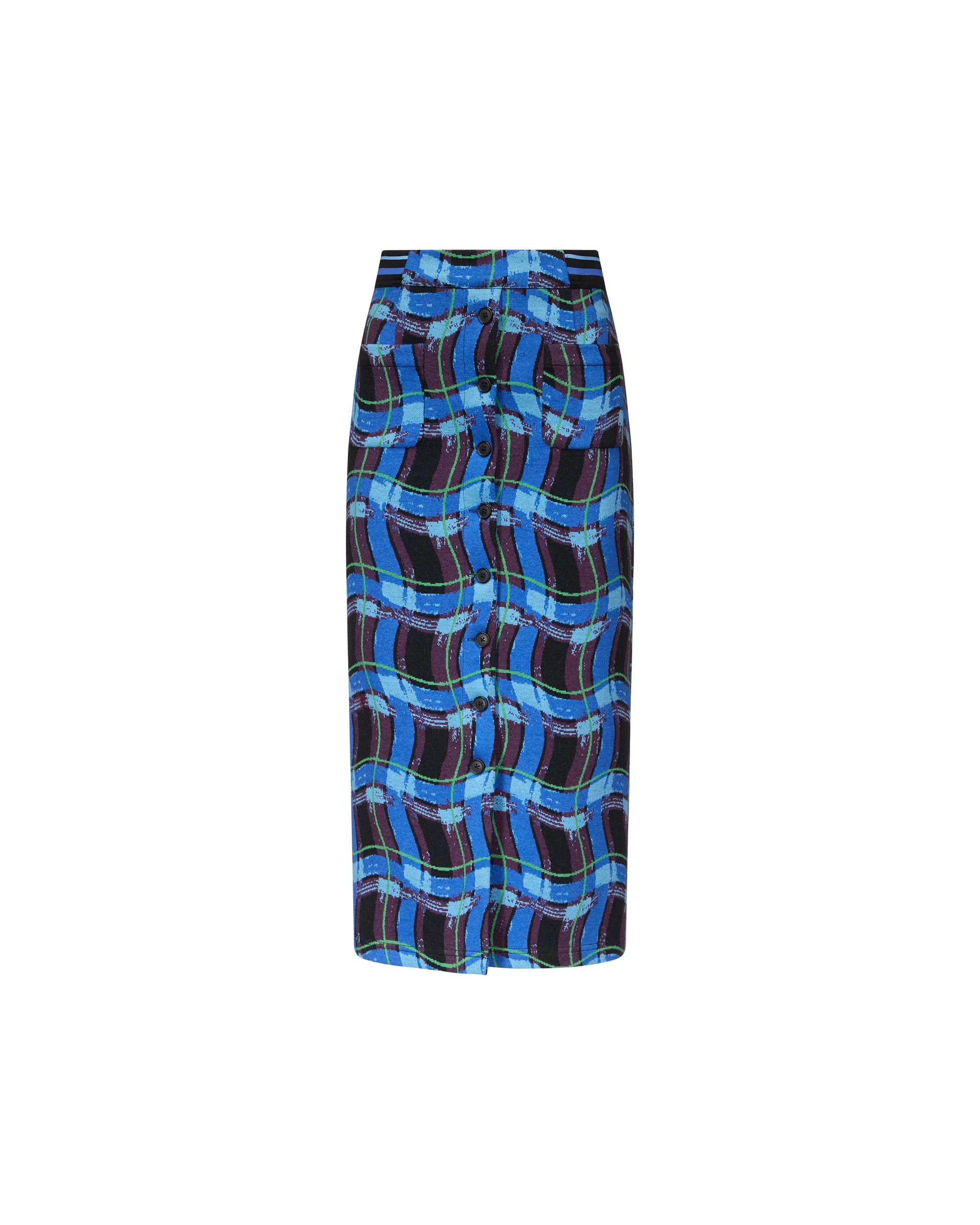 Our Natalie Skirt is a soft knit pencil skirt designed for effortless workwear. - High rise - Elastic waist - Leg slit - Buttons down the center - Midi Length Size & Fit Ruby is 5'9" and is wearing a size XS Fabric & Care A knit detailed with woven prints that give it a textured feel and an elevated look. 56.1% Cotton 42.4% Polyester 1.5% Spandex Dry Clean Only