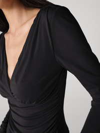 The Noa Top is a versatile elevated basic that can be effortlessly dressed up or down. - Crossover v neck - Sheer bodice - Hip length - Long sleeves - Ruched sides Size & Fit Milano is 5'10.5" and is wearing a size XS Fabric & Care An ultra-light and stretchy evolution of our jersey that creates soft, slinky silhouettes. 100% Viscose