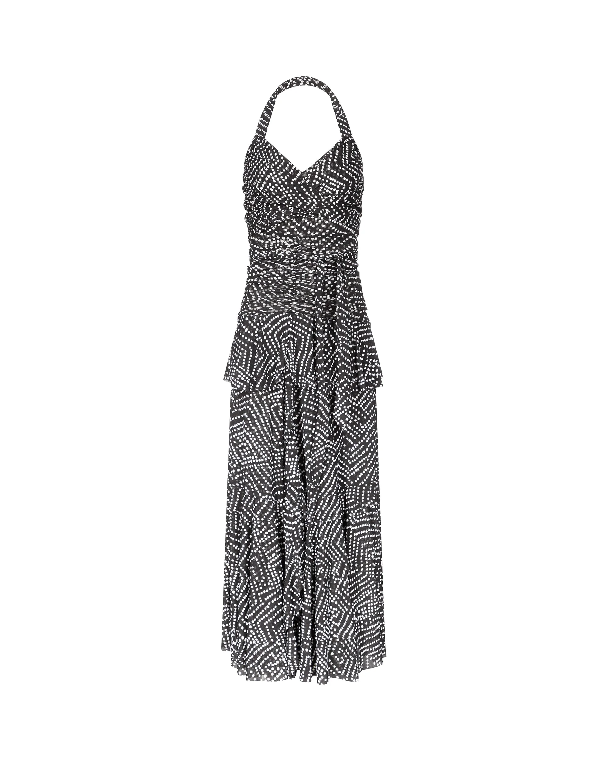 Made from our soft and stretchy mesh, the Patricia Halter Dress has a light, effortless feel. - Halter neck - Open back - V-neckline - Wrap-style bodice - Cinched waist - Full tiered skirt - Falls around the ankle Size & Fit Afra is 5'9" and is wearing a size XS Fabric & Care Our signature mesh is soft and stretchy, perfect for creating silhouettes with a close fit. If you prefer a tighter fit, consider sizing down, as our mesh has extra stretch for extra comfort. 100% Nylon