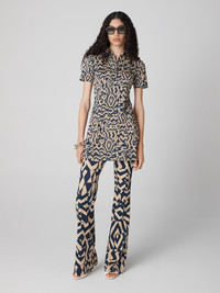 The Rachel mini dress is cut from a soft cotton silk jersey for a sporty, flirty feel. - 10% Silk, 90% Cotton - Classic, buttoned collar - Short sleeves - Close fit - "True Mini" length Size & Fit Kenny is 5'10" and wearing a size XS Fabric & Care Also known as the "Original Jersey," this fabric is inspired by the silk jersey Diane discovered in the 70s. This blend is ultra-soft and effortless. 10% Silk, 90% Cotton