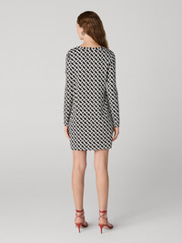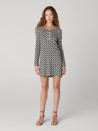 Crafted from our signature silk jersey in the iconic chain link print, the Reina Dress is a playful shift mini designed for effortless style. - 100% silk - Button-closure keyline neckline - Long sleeves - Shift style - True mini length Size & Fit Maia is 5'10" and is wearing a size XS Fabric & Care Silk jersey is our signature. Discovered by Diane in the 70s, this fabric has an effortless feel with a hint of stretch and a polished, elegant look. 100% Silk Jersey