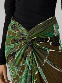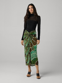 Our Simona Skirt hugs in all the right places, crafted in our signature lightweight tissue jersey and featuring this season’s must-have print, - Gathered waist - Close fit - Stretchy - Knot detail - Midi length Size & Fit Beatriz is 5'11" and is wearing a size XS Fabric & Care An ultra-light and stretchy evolution of our jersey that creates soft, slinky silhouettes. 100% Viscose Dry Clean Only