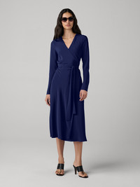 Our timeless Tilly dress has a fluid drape and true wrap closure, making it the perfect dress to wrap on and go. - V neckline - Long sleeves - True wrap - Midi length Size & Fit Beatriz is 5'11" and is wearing a size XS Fabric & Care Made from a viscose blend, this fabric combines softness and structure with a smooth texture that drapes effortlessly. 50% Viscose 50% Rayon Dry Clean Only