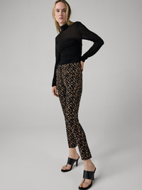 Our Vienna Pant is cut from soft knit jacquard and finished in a refined, tailored shape. - Mid rise - Tailored waistband with belt loops - Fitted leg - Ankle length Size & Fit Harleth is 5'10" and is wearing a size 2 Fabric & Care A knit detailed with woven prints that give it a textured feel and an elevated look. 50% Cotton 47% Polyester 3% Spandex Dry Clean Only