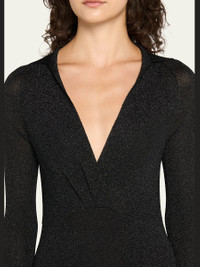 Cut from shimmering knit fabric, the "Castella" midi dress from the Diane von Furstenberg x Henry Zankov collection hugs the figure in a comfortable body-skimming silhouette for effortless polish and poise The capsule collaboration is a harmony between DVF's legendary prints and Zankov's distinctive visual language Approx. 54"L from shoulders to hem Deep V neckline with spread collar Long raglan sleeves; approx. 28"L Empire seam Side slit hem; approx. 17"L Full length Column silhouette Polyester Imported Online Inquiries: BGS21_T8SAL| Store Inquiries: #5399879