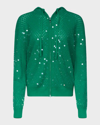 An elevated take on the classic piece, this Diane von Furstenberg x Henry Zankov "Marco" hoodie is finely knit with pointelle stitching and dotted with diagonal lines of sequins The capsule collaboration is a harmony between DVF's legendary prints and Zankov's distinctive visual language Drawstring hood Zip front closure Drop shoulders Long sleeves; approx. 22"L Ribbed cuffs and hem Relaxed fit Merino wool/cashmere Imported