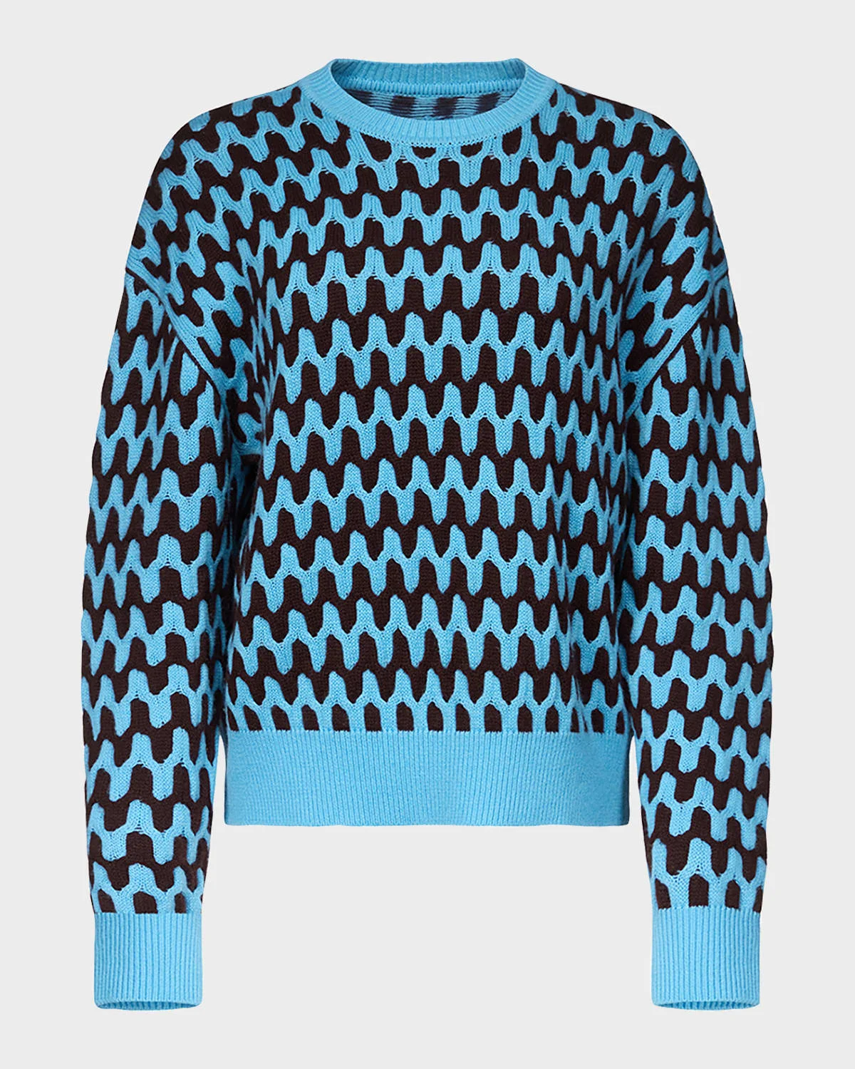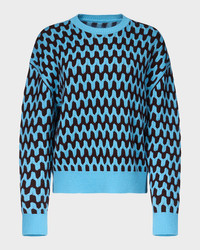 This "Volto" sweater from the Diane von Furstenberg x Henry Zankov collection is animated with wavy lines for eyecatching movement and jacquardknit for extra thickness The capsule collaboration is a harmony between DVF's legendary prints and Zankov's distinctive visual language Approx. 23"L from shoulders to hem Crew neckline Drop shoulders Long sleeves; approx. 20.5"L Oversized fit Pullover style Merino wool/cashmere Imported