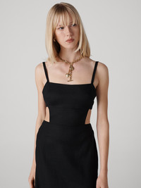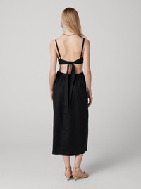 Made from a soft and stretchy linen, the Zoe Dress is a unique LBD with a comfortable feel. - Stretch Linen - Adjustable straps - Cinched waist with cut-out detail - Open lower back with tie detail - Smocked back - Midi length Size & Fit Afra is 5'9" and is wearing a size XS Fabric & Care Stretch Linen, our new natural fabric, has a light, luxurious feel, and a subtly structured look. 55% Linen 43% Tencel Lyocell 2% Spandexx
