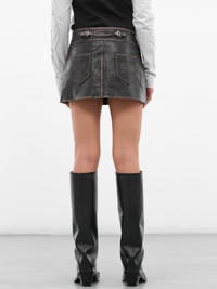 Black Leather Graphic Mini Skirt