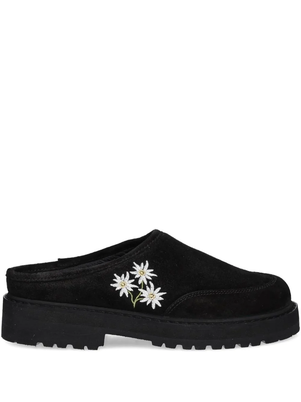 Maggiore Stella embroidered platform mules Highlights - Black - Suede - Flower embroidery - Platform sole - Slip-on style - Round toe Imported Composition Suede 100% Lining: PU-Coated Cow Leather 100%