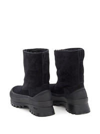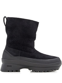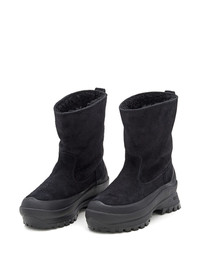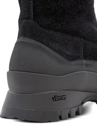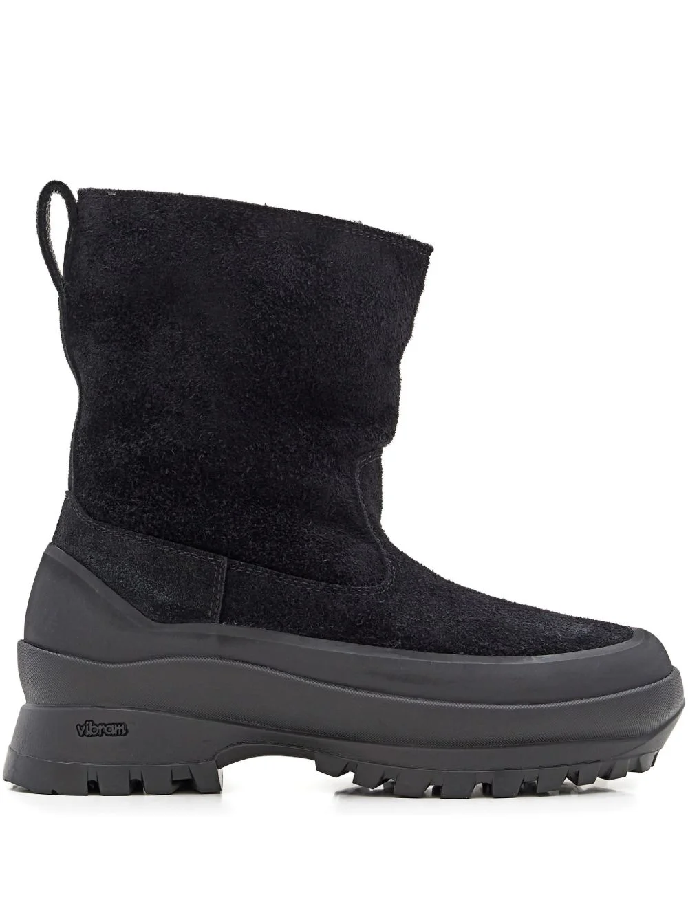 round-toe suede boots Highlights - Black - Suede upper - Rubber sole - Round toe - Pull-on tab Imported Composition Lining: Fabric 100% Outer: Calf Suede 100% Sole: Rubber 100%