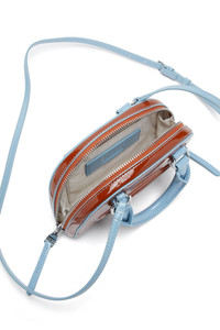 Product Description This women’s mini crossbody is a slimmer yet fully functional version of the ‘Dome’ bowling bag evolved from the iconic 1DR. Featuring an adjustable strap and rolled top handles, it embraces a playful colour-block design in PU. The fabric has the distinctive wrinkled texture and patent shine of naplak leather. The zipped compartment – roomy enough for your phone, card holder, keys and lipstick – opens wide, with side gussets keeping everything secure. Up front, an embossed Oval D is as bold as the bag. ID: X10464P8768 Materials & Details Composition: 100%Polyurethane Top handles with snap-button tab Adjustable strap (non-detachable) Two-way zip closure Gusseted interior with card slot