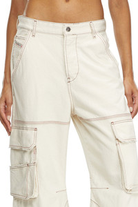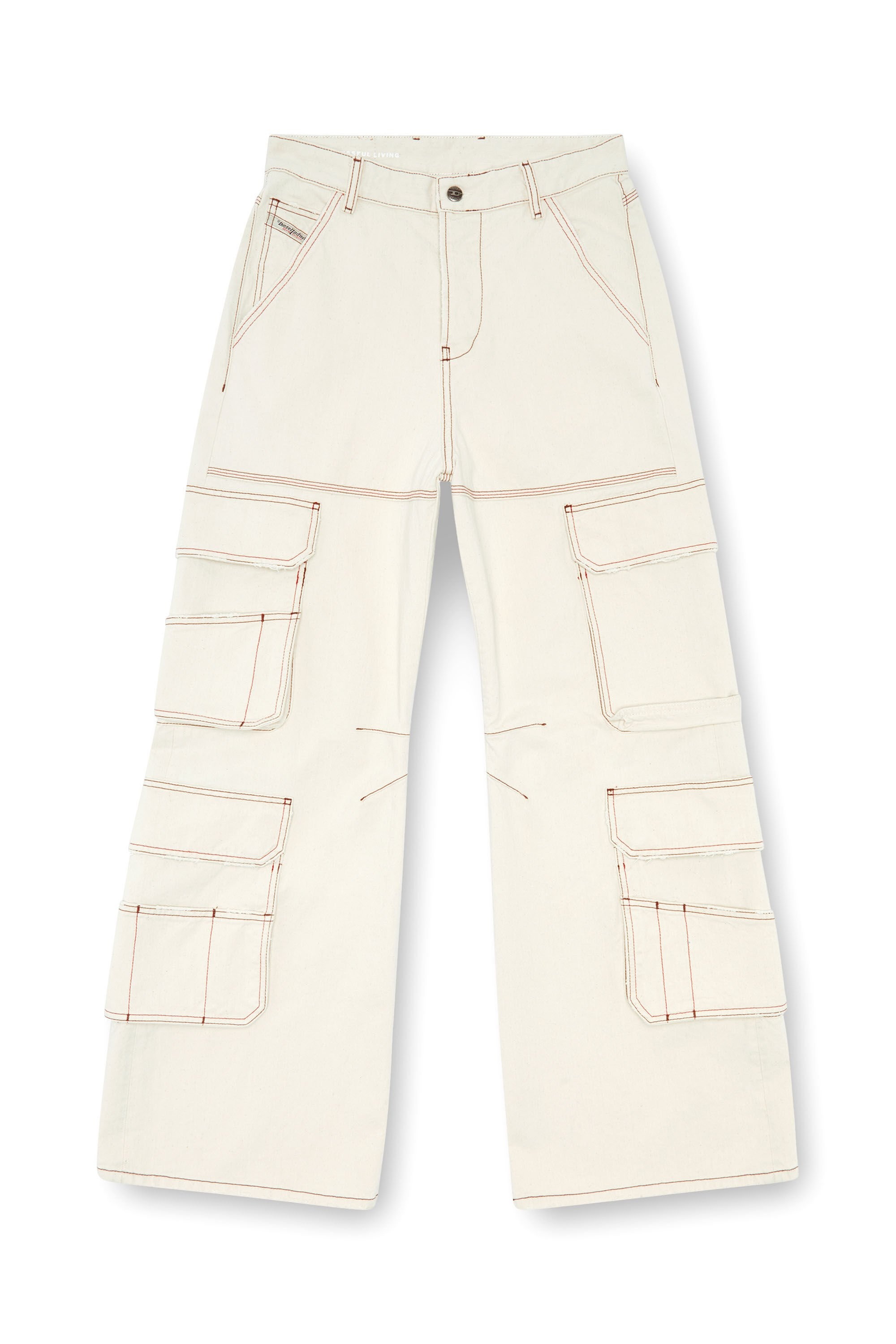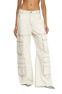 Product Description Relaxed style with a low waist, low crotch, and extra-long wide leg that nods to '90s jeans. Four large cargo pockets amp up the utility-inspired attitude. Button closure. Channelling a workwear attitude that's typical of Diesel's DNA, this fix denim features a clean ecru coloured wash. The style is reinforced with triple stitching in contrasting red and brown thread. ID: A133160GRDQ Size & Fit Model is wearing a size 26 and is 175 cm / 5'7'' Check the size chart to choose the correct size. Materials & Details Composition: 100%Cotton Fit: Loose Waist: Low Leg: Straight Wash: Clean Fabric: Non-Stretch Color: White Closure: Button