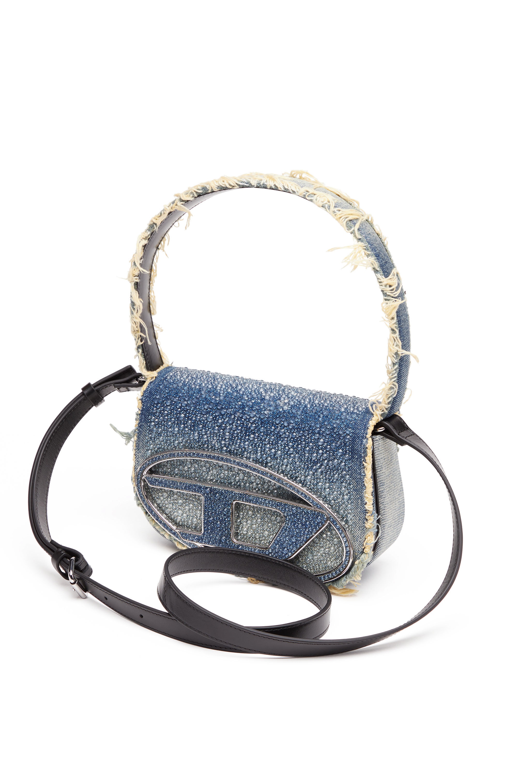 Product Description Building on Diesel’s irreverent codes, this women’s 1DR shoulder bag combines the house’s signature solarised denim, featuring a warm-hued sun-faded effect, with droplet-like transparent crystals – the encrusted flap and denim-inlaid Oval D plaque look as though they were viewed through water. This iconic bag is finished with fraying and comes with an optional crossbody strap. ID: X08396P6803 Materials & Details Composition: 90%Cotton 10%Cow Leather Top handle Detachable adjustable strap Magnetic flap closure Inside: main compartment with slip pocket and two flat compartments