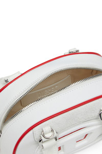 Product Description This women’s ‘Dome’ mini bowling bag is an evolution of the iconic 1DR. Designed in a curved structured shape with a two-way zip fastening and metal feet, this playful iteration in nylon and PU embraces a sporty colour-block aesthetic. It has a detachable crossbody strap and a top handle secured with a snap-fastening loop. The front is embellished with a printed and appliqued Oval D logo for a 3D effect. ID: X10369PR886 Materials & Details Composition: 60%Polyester 40%Polyurethane Top handles with snap-button tab plus detachable adjustable strap Two-way zip closureSelf-standingMetal feetInside: 1 zip pocket and 1 slip pocket