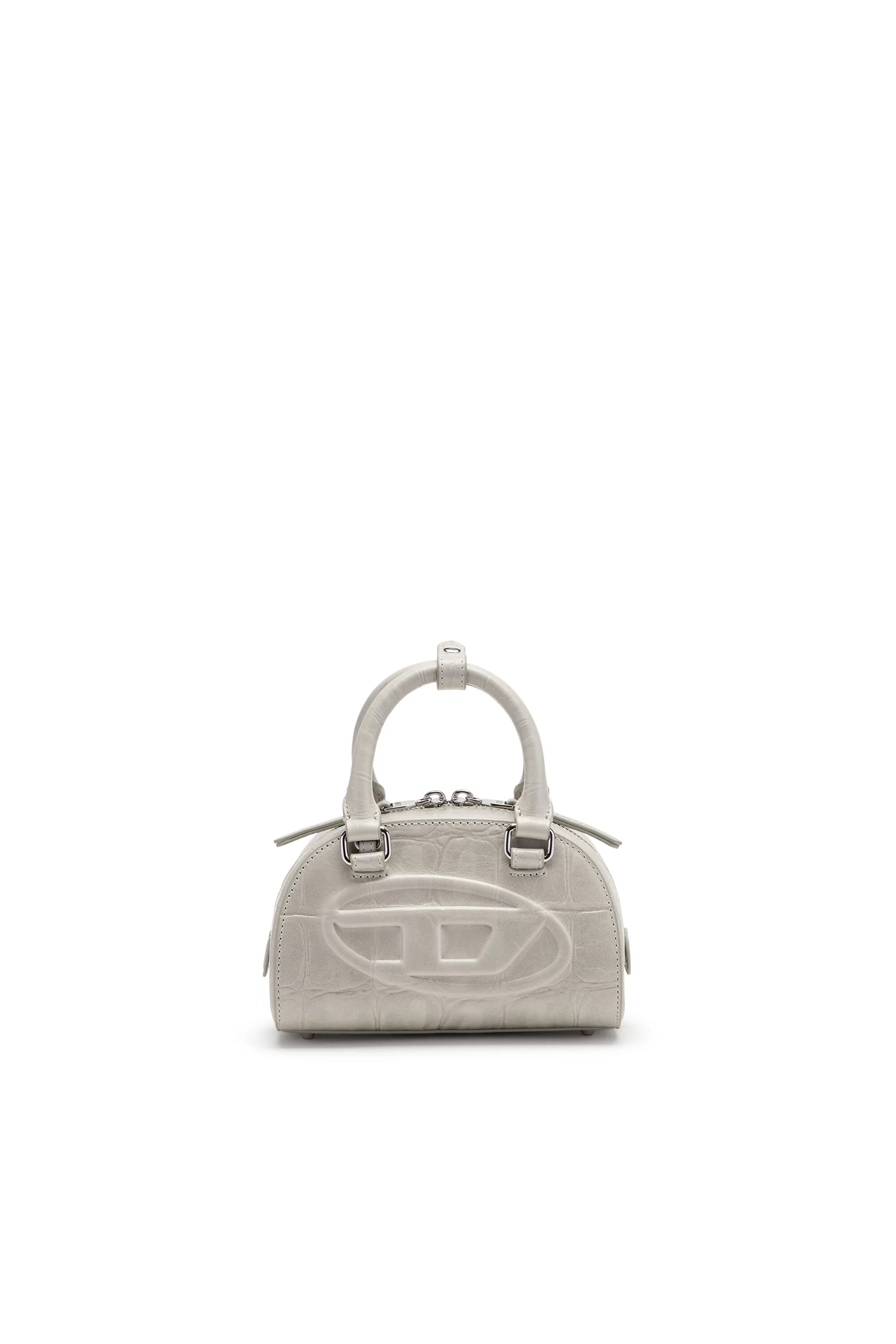 Product Description Unapologetically directional, the women’s 'Dome” mini bag from the SS26 Runway Show evolves the iconic 1DR through meticulously crafted details and luxe materials. Designed for both top-handle and crossbody wear, it’s made from high-quality Italian leather with a giant-scale croc-effect motif and a glossy finish. The curved, structured silhouette retains its signature cues — rolled handles, a two-way zip fastening and metal feet — while a high-frequency embossed Oval D logo lifts cleanly from the surface, broadcasting Diesel’s identity with dimensional clarity. ID: X10369P8960 Materials & Details Composition: 100%Cow Leather Spring Summer 2026 Runway Show Rolled top handles with snap-button tab Detachable adjustable leather strap Two-way zip closure Internal zip pocket