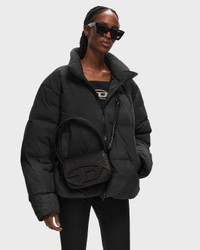 Exemplifying the brand's signature style, this textured Fall '24 runway bag from Diesel has a matte, monochrome look. Crafted from supple lambskin and sauvage leather with a natural finish, it has a particularly dry look that is enhanced by a transparent tint that highlights the irregularities of the leather. The bag is equipped with a matching chain strap and an optional crossbody strap and offers versatile styling options. - Chunky chain handle - Adjustable, detachable shoulder strap - Flap with magnetic closure - Inside: Slip pocket and flat pocket Article Number: X08396-PS919-T8013 Gender: Women Color: BLACK-T8013 Material: 100% Leather