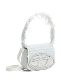1DR shoulder bag Highlights - Light blue - Frayed trim - Crystal embellishment - Logo plaque - Adjustable detachable shoulder strap - Top handle - Foldover top Imported Composition Outer: Cotton 90%, Calf Leather 10%