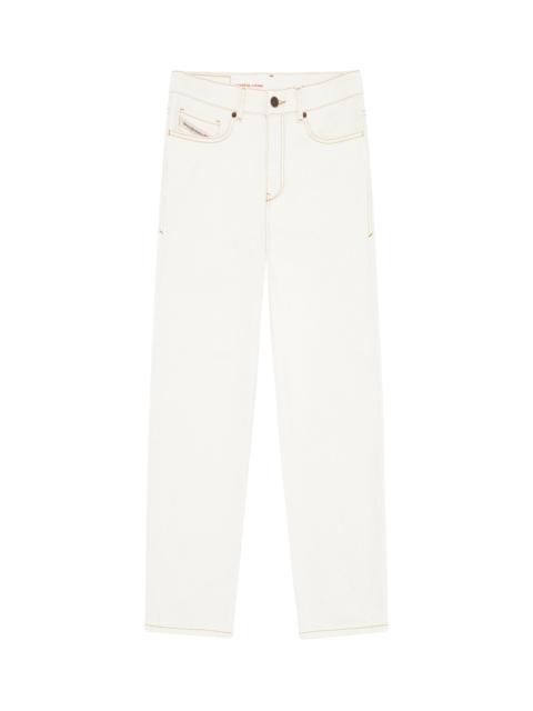 PRODUCT ID: A0361809D63 - 99%Cotton 1%Elastane-Spandex - Boyfriend - Regular - Regular waist - Clean - Stretch - White - Zip fly Model is wearing a size 26 and is 175 cm / 5'7'' Fits true to size, take your normal size. Boyfriend style with regular waist and a slightly low crotch. Designed to hit at ankle-length and finished with a zip fly. Crafted from stretch denim in organic cotton with a clean, optical white wash.