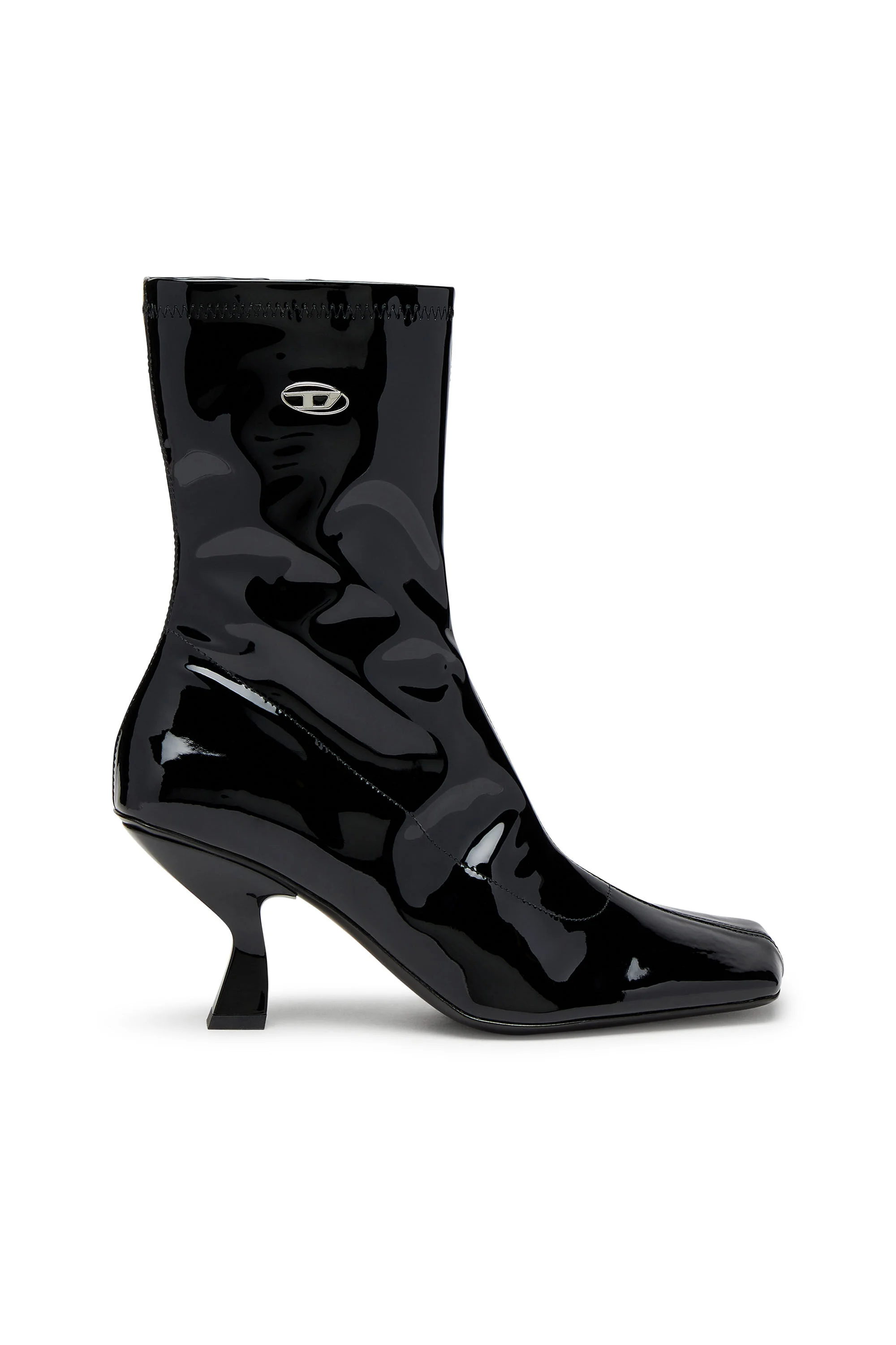 Product Description Slick and modern, these women’s ankle boots in patent PU are soft, flexible and ultra-glossy. Fastening with a side zip, they have square toes and a subtle metal Oval D plaque embellishment. The 7.5cm heel offers a considerable amount of lift, but thanks to its angled, fluted profile, feels extremely comfortable for everyday life. ID: Y03630P2648 Materials & Details Composition: 60%Polyurethane 40%Polyester Side zip 7.5cm heel