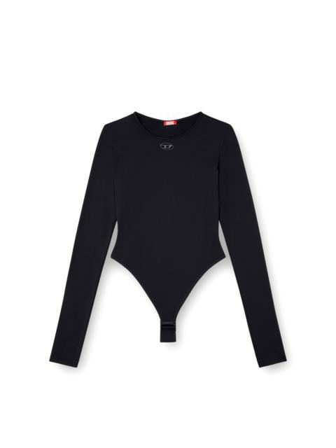 Product Description Women's long-sleeved bodysuit cut from smooth stretch nylon. The soft fabric is punctuated by a cut-out Oval D under the neckline and tonal stitching defines the outline. ID: A183170IKBN Size & Fit Model is wearing a size S and is 175 cm / 5'7'' Check the size chart to choose the correct size. Materials & Details Composition: 84%Polyamide-Nylon 16%Elastane-Spandex