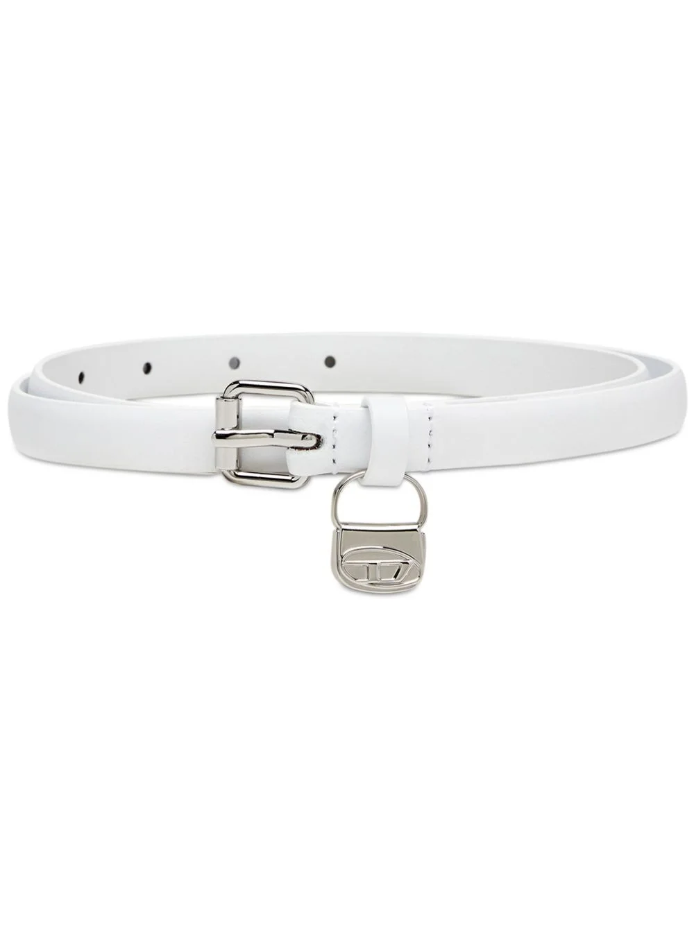 B-Charm Hip belt Highlights - White - Calf leather - Smooth grain - Front buckle fastening - Logo charm - Thin strap - Punched holes - Pointed tip - Adjustable fit Made in Italy Composition Calf Leather 100%