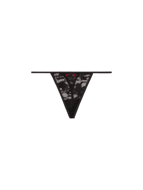 Product Description This women's sheer thong is cut from stretchy jacquard lace with a utilitarian camouflage motif. A tonal Oval D logo embellishes the front. ID: A192380DRAK Size & Fit Model is wearing a size S and is 175 cm / 5'7'' Check the size chart to choose the correct size. Materials & Details Composition: 86%Polyamide-Nylon 14%Elastane-Spandex, Elastic 80%Polyamide-Nylon 20%Elastane-Spandex, Gusset 100%Cotton