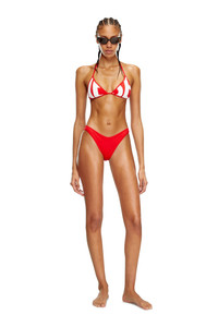Model is wearing a size S and is 175 cm / 5'7'' Fits true to size, take your normal size. Women's bikini top in quick-dry fabric spun from recycled fibres and stretch. This style is emblazoned with contrast maxi Diesel lettering, cut off to form the triangle cuffs.