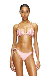 Product Description Women's bikini top in quick-dry fabric spun from recycled fibres and stretch. This style is emblazoned with contrast maxi Diesel lettering, cut off to form the triangle cuffs. ID: A152270HPAL Size & Fit Model is wearing a size S and is 175 cm / 5'7'' Check the size chart to choose the correct size. Materials & Details Composition: 78%Polyamide-Nylon 22%Elastane-Spandex Adjustable neck and back ties