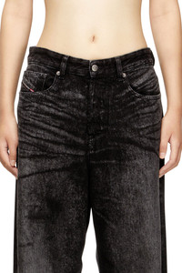 Product Description Crafted from a blend of cotton and hemp, this dark grey fix denim is stone washed and treated with bold lasered artwork – iconic graphic motifs that lend an extreme, instantly recognisable touch. The result is a distinctive Runway wash that showcases Diesel's creativity and craftsmanship. ID: A21497007DB Size & Fit Model is wearing a size 26 and is 175 cm / 5'7'' Check the size chart to choose the correct size. Materials & Details Composition: 80%Cotton 20%True Hemp Fit: Relaxed Waist: Low Wash: Medium treated Fabric: Non-Stretch Closure: Button fly Crotch: Low