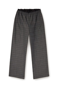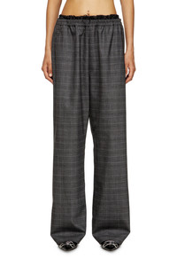 Product Description Wool trousers, wide and comfortable, in Prince of Wales fabric with nylon insert at the waist. The waist is adjustable thanks to a practical drawstring and an internal elastic band. There are welt pockets at the front and back, and the metal logo is visible on the back of the trousers. ID: A183820DEBS Size & Fit Model is wearing an IT size 40 and is 175 cm / 5'7'' Check the size chart to choose the correct size. Materials & Details Composition: 54%Polyester 44%Virgin Wool 2%Elastane-Spandex, Contrast 100%Polyamide-Nylon Regular fit Drawstring at the waist Front and back welt pockets Metal logo
