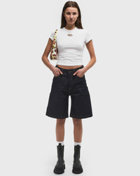 The De-Sire shorts from Diesel come in a classic 5-pocket design and are made from denim in a relaxed, knee-length fit. The shorts are made from 100% dark blue cotton and have been washed to emphasize their simple, minimalist look. - Five-pocket design - Button placket - Belt loops Article Number: A14051-0GRDV-01 Gender: Women Color: BLUE DENIM Material: 100% Cotton