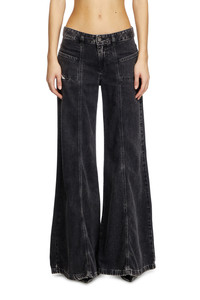 Product Description Flared style with a regular waist, inspired by the dance club looks from the '70s. The front pockets nod to the iconic "Hush" Diesel jean. Crafted from a combination of cotton and TENCEL™ Lyocell, this DNA denim features a clean black wash. ID: A12808068HN Size & Fit Model is tall 177 cm / 5'9.5", the waist measures 62 cm / 24.5" Check the size chart to choose the correct size. Materials & Details Composition: 50%Cotton 50%Lyocell Fit: Slim Waist: Mid Leg: Bootcut and Flare Wash: Clean Fabric: Non-Stretch Color: Black/Dark grey Closure: Zip fly