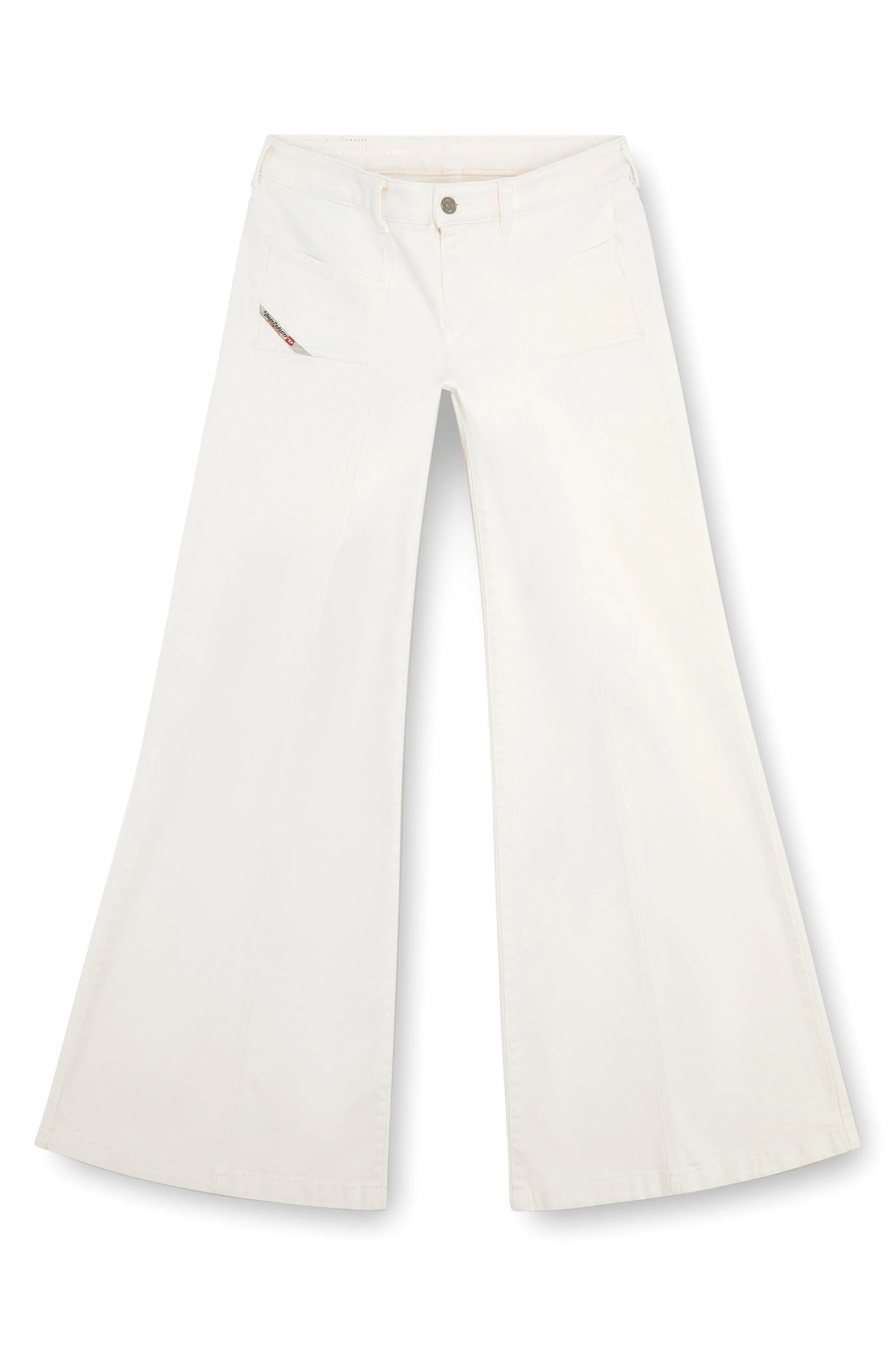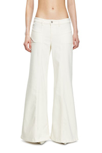 Product Description Flared style with a regular waist, inspired by the dance club looks from the '70s. The front pockets nod to the iconic "Hush" Diesel jean. Featuring a clean white finish, this slightly stretchy comfort denim is part of the DNA selection of iconic and essential washes. It's crafted using organic cotton. ID: A1280809J68 Size & Fit Model is tall 177 cm / 5'10'', the waist measures 60 cm / 23" Check the size chart to choose the correct size. Materials & Details Composition: 99%Cotton 1%Elastane-Spandex Fit: Slim Waist: Mid Leg: Bootcut and Flare Closure: Zip fly