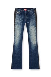 Product Description Bootcut fit with a low waist and slim leg. The style is cut to a second-skin silhouette that flares subtly at the ankle. Representing Diesel's experimental spirit, this super-stretch denim combines two contrasting washes in blue and black. Crafted using organic cotton, it showcases distinctive workmanship that recreates whiskers and used effects with a trompe l'oeil effect, artfully designed to complement each specific style. ID: A173410ABDL Size & Fit Model is wearing a size 26 and is 175 cm / 5'7'' Check the size chart to choose the correct size. Materials & Details Composition: 97%Cotton 2%Elastomultiester 1%Elastane-Spandex Fit: Bootcut Waist: Low Wash: Treated Fabric: Super stretch Closure: Zip fly