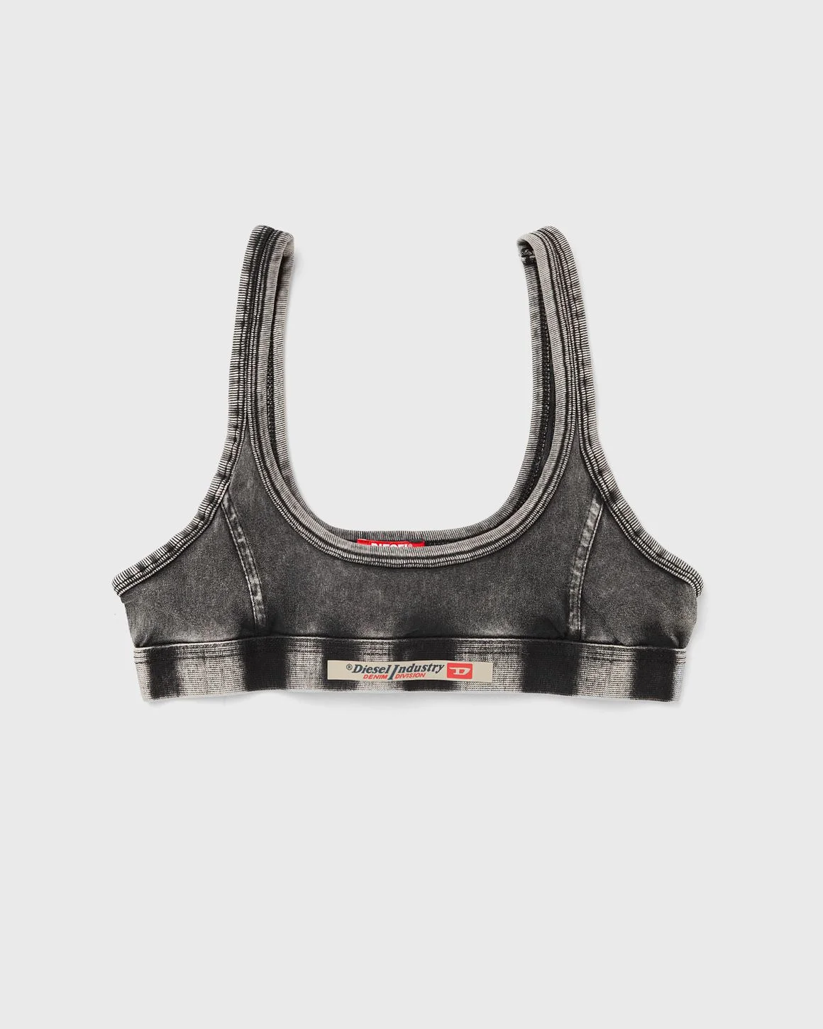The Diesel Ariel DNM Bra in black combines sporty comfort with an urban design. Made from an elasticated cotton blend (95% cotton, 5% elastane), it offers a comfortable fit and freedom of movement. - Round neckline - Elasticated waistband - Logo on the front Article Number: A19563-0SHAN-900A Gender: Women Color: BLACK Material: 95% Cotton, 5% Spandex/elastane
