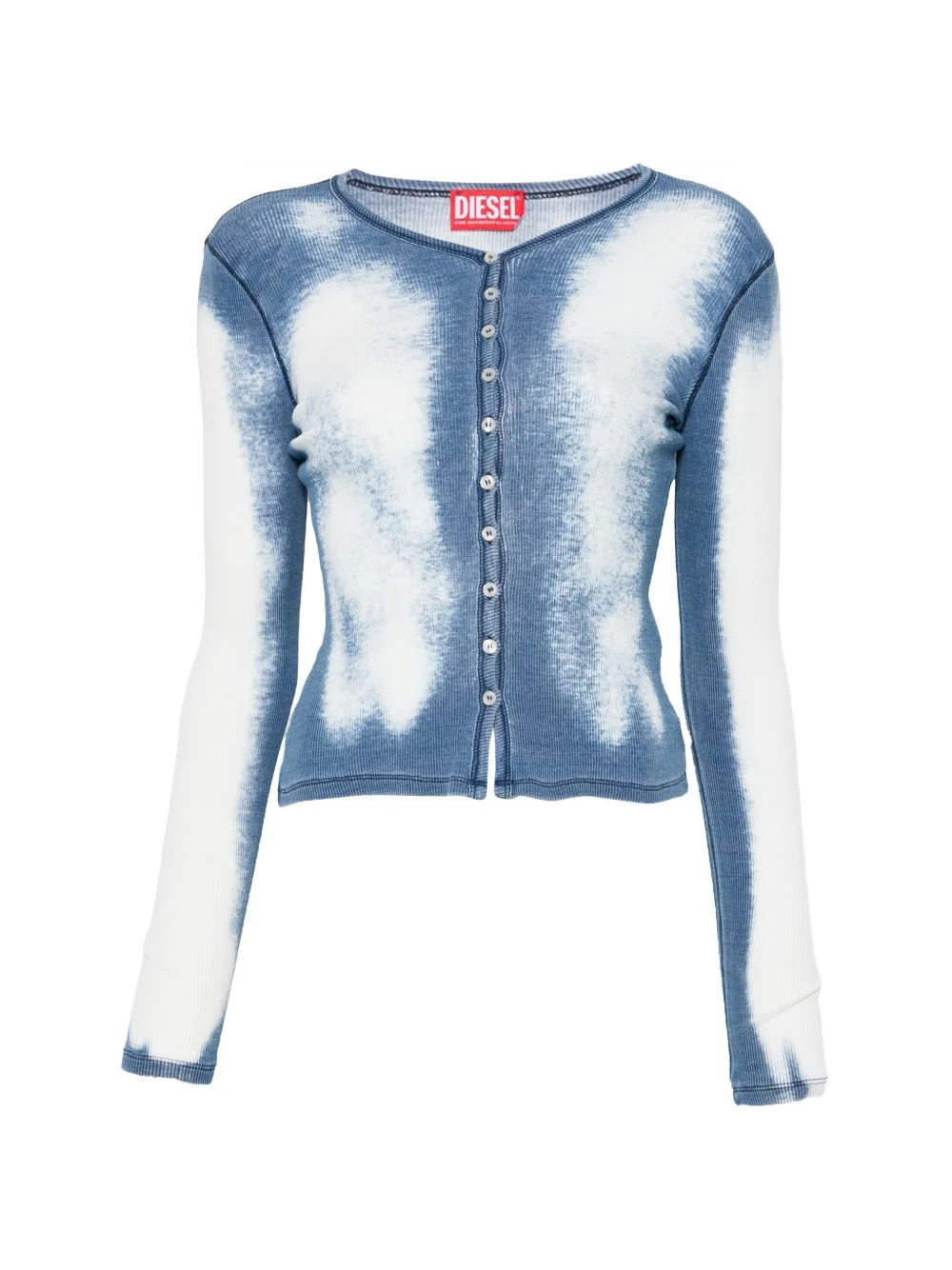 buttoned cardigan Highlights - Blue - Ribbed knit - Button fastening - V-neck - Long sleeves Imported Composition Cotton 96%, Elastane 4% Washing instructions Hand Wash