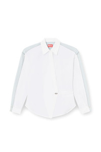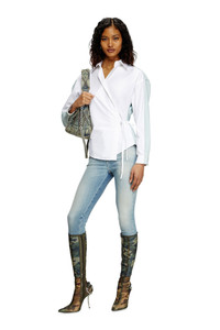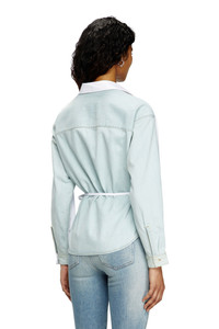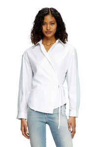 Product Description This women's shirt reimagines the wrap silhouette in a deconstructed way: compact cotton poplin and treated denim are spliced together to create the illusion of two different styles from the front and back. It's cut for a regular fit and fastens with ties. Note the metal Oval D charm dangling from the waist. ID: A173860CBCP Size & Fit Model is wearing an IT size 40 and is 175 cm / 5'7'' Check the size chart to choose the correct size. Materials & Details Composition: 100%Cotton Wrap style Self-fastening waist ties