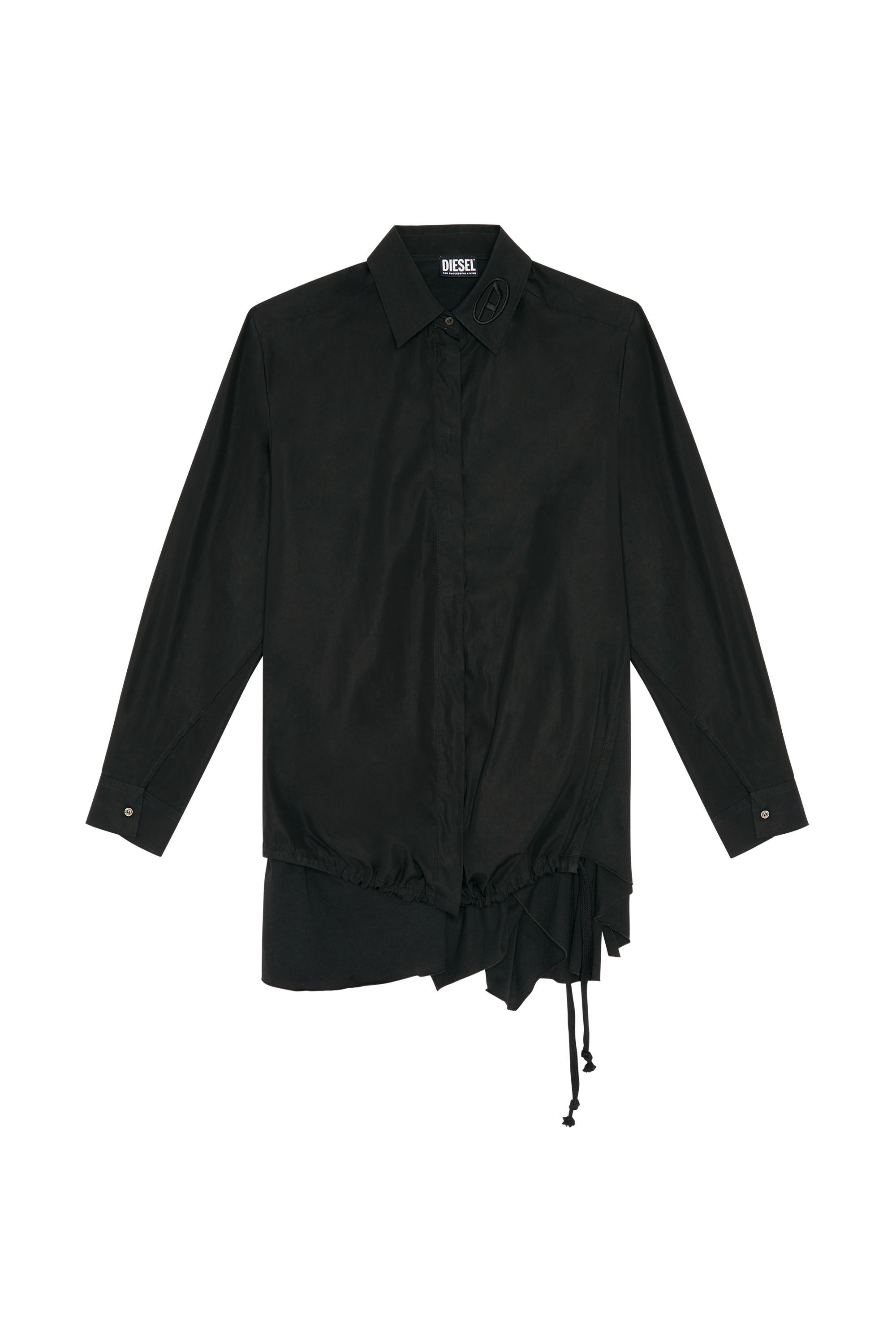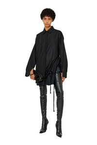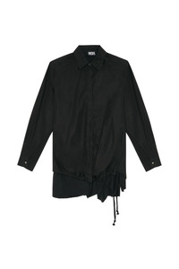 PRODUCT ID: A087180DMAR - 100%Cotton - Loose fit - Button closure - Drawstring hem - Buttoned cuffs This women's shirt is cut to a loose fit from washed cotton poplin. A split drawstring hem layered with tonal jersey creates an asymmetrical silhouette. Finished with an embroidered oval D logo on the collar.