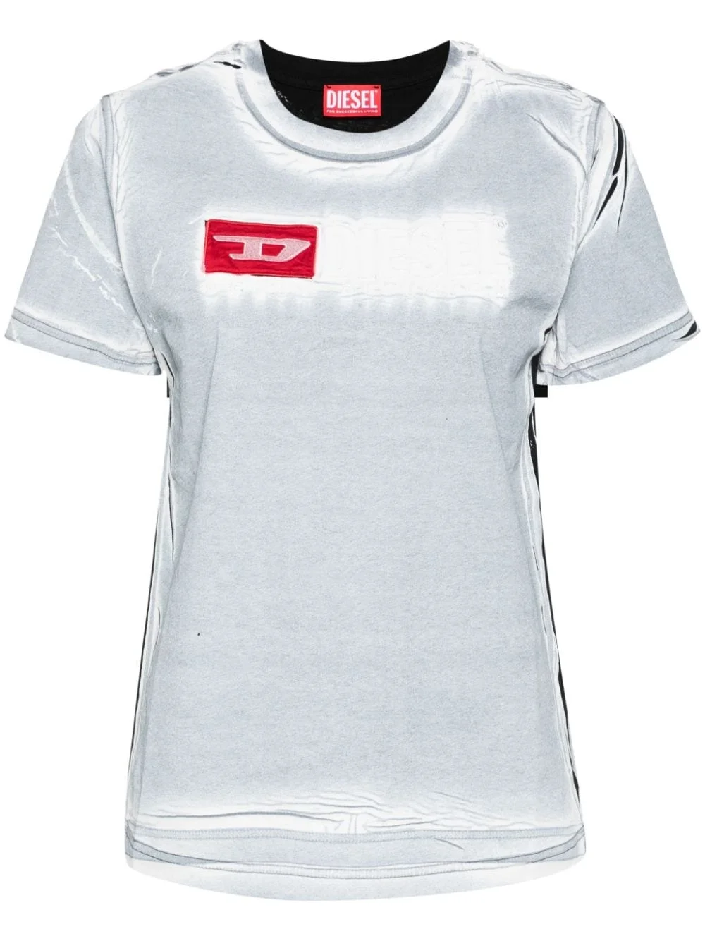 creased-paint cotton T-shirt Diesel demonstrates its propensity for casual staples with this T-shirt. It’s crafted from white and grey cotton and adorned with contrasting red logo embroidery at the chest. Highlights - White, medium grey, black - Cotton - Garment dyed - Embossed finish - Painterly print - Distressed effect - Crew neck - Short sleeves - Logo patch and embroidered logo at the chest - Straight hem - Square open back - Logo print to the rear - Contrast lining - Clg authenticity code Imported Composition Cotton 100% SIZE & FIT Model measurements Height 5 ft 11 in(1.8 m) Bust/Chest 33.07 in(84 cm) Hips 37 in(94 cm) Waist 25.59 in(65 cm) Measurement SLEEVE LENGTH 7.48 in(19 cm) LENGTH 22.83 in(58 cm) BUST 37 in(94 cm) Shoulder Width 15.35 in(39 cm) FittingInformation Designed for a slim fit that sits just away from the body offering a close yet comfortable fit Made from a midweight non-stretch fabric, this piece offers minimal elasticity when worn This piece fits true to size – take your usual size
