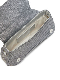 crystal-embellished logo-plaque clutch bag Highlights - Silver-tone - Crystal embellishment - Logo plaque - Curved shape - Detachable strap Imported Composition Fabric 100%, Lurex 100%