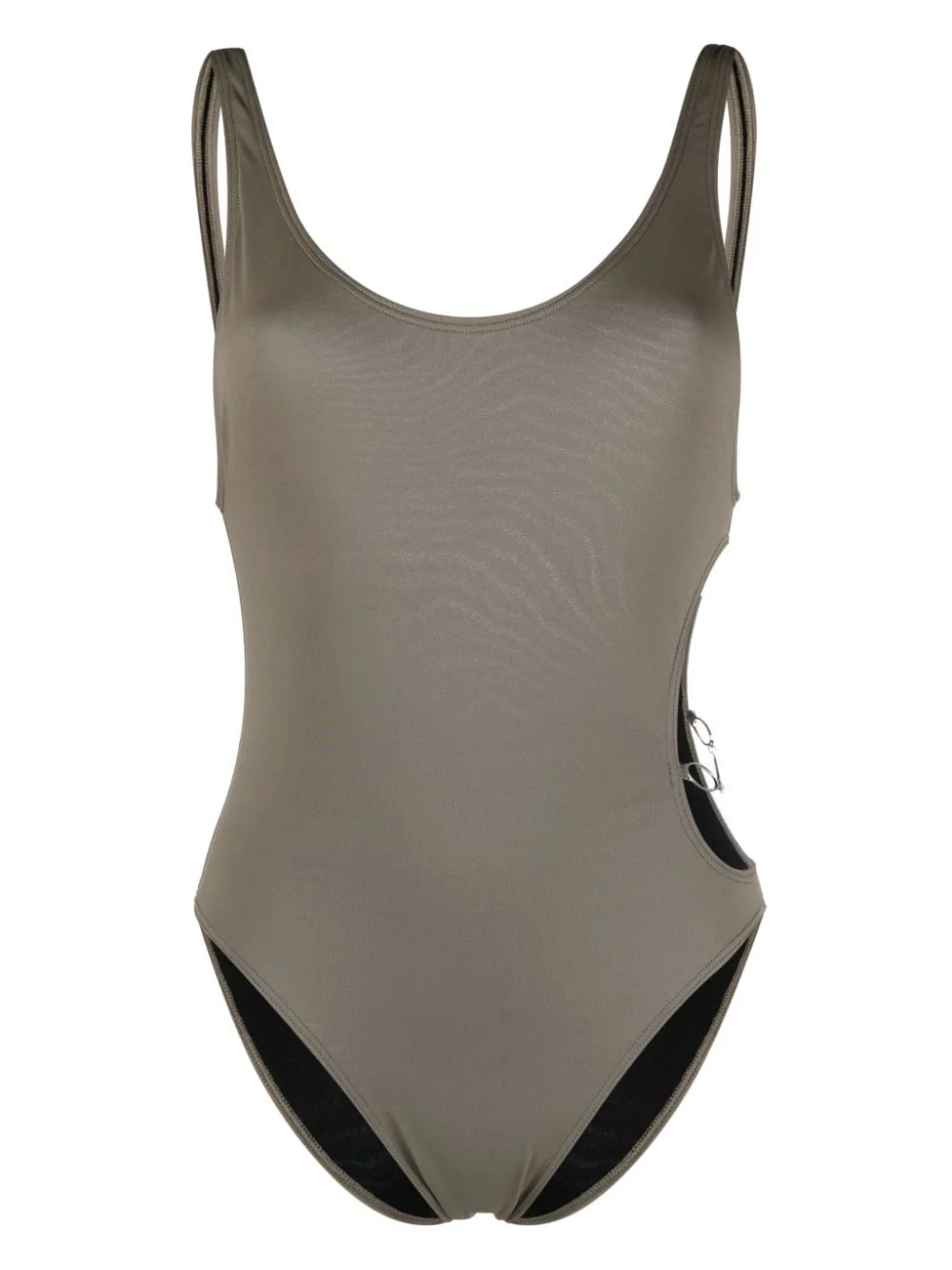 cut-out swimsuit Diesel's swimsuit is distinguished by a side cut-out and accompanying logo plaque. It draws inspiration from classic '90s swimwear with high-cut legs and a low scoop back. Highlights - Green - Stretch-design - Logo plaque - Scoop neck - Scoop back - Cut-out detailing - High cut - Be mindful to try on swimwear over your own garments. Imported Composition Outer: Polyester 82%, Elastane 18% Lining: Nylon 85%, Elastane 15% Washing instructions Machine Wash